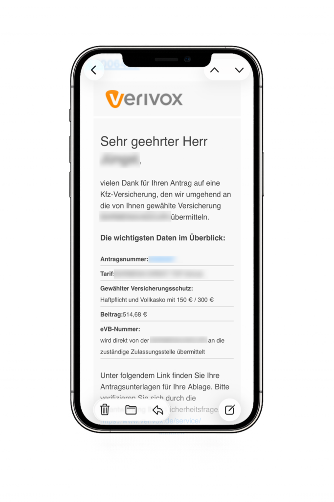 7-stellige eVB-Nummer per Email erhalten. Diese Nummer geben Sie bei der Zulassungsstelle an – fertig.